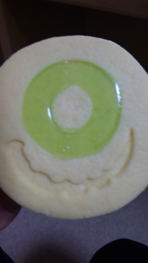 可愛いですよね!?これ、クッキーです!緑部分はメロン味!